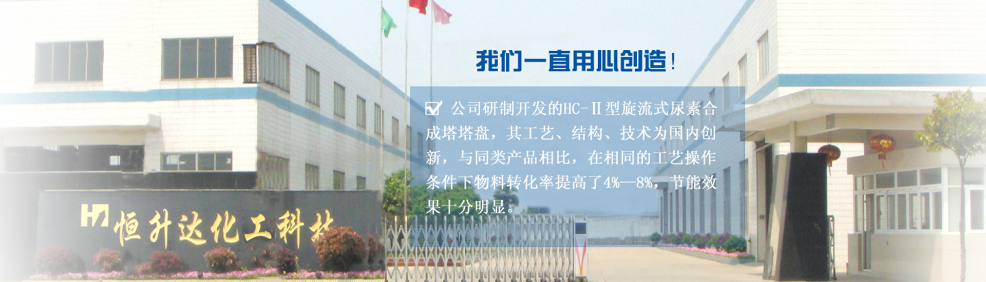 我公司創(chuàng)辦于1985年,組建于2007年,系國(guó)內(nèi)主要生產(chǎn)造粒塔粉塵回收、尿素合成塔塔盤(pán)和電加熱器、流體防爆電加熱器的專(zhuān)業(yè)廠(chǎng)家。公司占地面積近35000平方米,擁有現(xiàn)代化的生產(chǎn)廠(chǎng)房及生產(chǎn)設(shè)備?,F(xiàn)有高級(jí)工程師5名,專(zhuān)業(yè)技術(shù)人員10余名,是一個(gè)集科技開(kāi)發(fā)、生產(chǎn)制造、安裝調(diào)試、銷(xiāo)售于一體的集團(tuán)化企業(yè)。電加熱器和流體防爆電加熱器廣泛應(yīng)用于石油天然氣、化工、軍工、硅、氟、化纖、發(fā)電、食品、機(jī)械等行業(yè)防爆和非防爆區(qū)域,防爆等級(jí)可達(dá)EXDⅡCT1-T6。產(chǎn)品暢銷(xiāo)全國(guó)各省市,并被多個(gè)國(guó)家重點(diǎn)工程所選用。公司研制開(kāi)發(fā)的HC-Ⅱ型旋流式尿素合成塔塔盤(pán),其工藝、結(jié)構(gòu)、技術(shù)為國(guó)內(nèi)創(chuàng)新,與同類(lèi)產(chǎn)品相比,在相同的工藝操作條件下物料轉(zhuǎn)化率提高了4%—8%,節(jié)能效果十分明顯,被國(guó)內(nèi)幾大化機(jī)廠(chǎng)選作配套產(chǎn)品。隨著國(guó)家對(duì)環(huán)境保護(hù)的嚴(yán)格要求,研制開(kāi)發(fā)的尿素造粒塔頂粉塵回收裝置,既給企業(yè)解決了環(huán)保問(wèn)題,又給企業(yè)增加了經(jīng)濟(jì)效益,目前已在國(guó)內(nèi)多家企業(yè)投入使用...